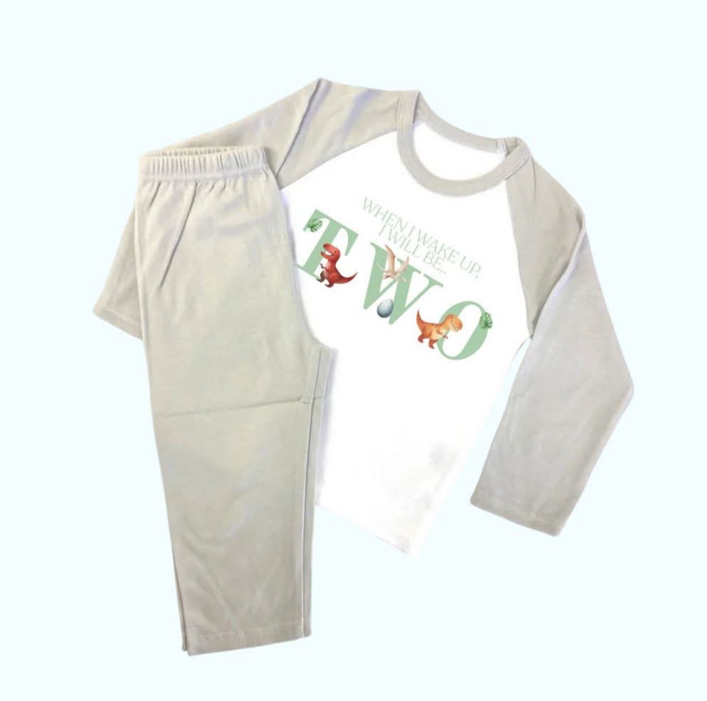 This grey two-piece Pj set is a charming celebration of a little one's second birthday 🎉. It features: